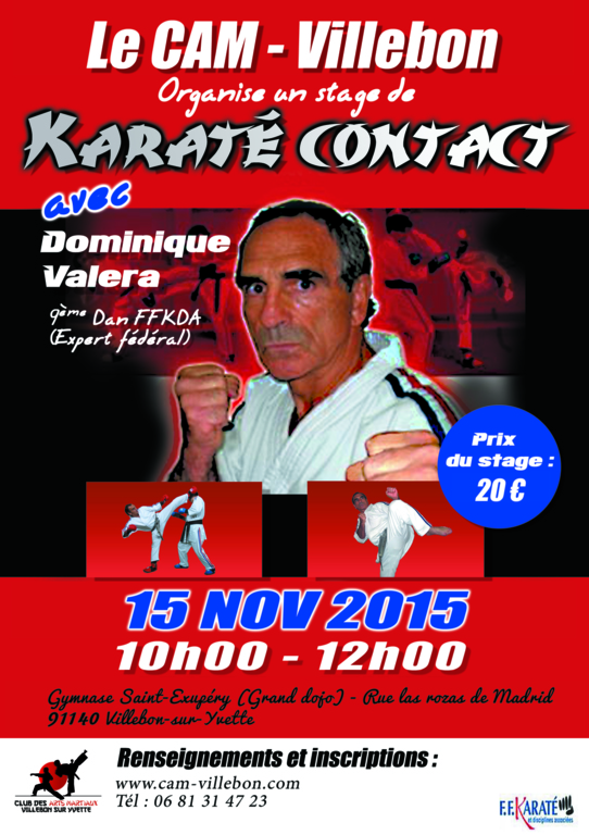 Stage de Karaté contact avec Dominique Valéra le dimanche 15 novembre, 10h-12h à Villebon.