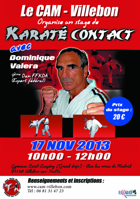 Dimanche 17 novembre à Villebon, stage de Karaté contact avec Dominique Valéra 9ème Dan.